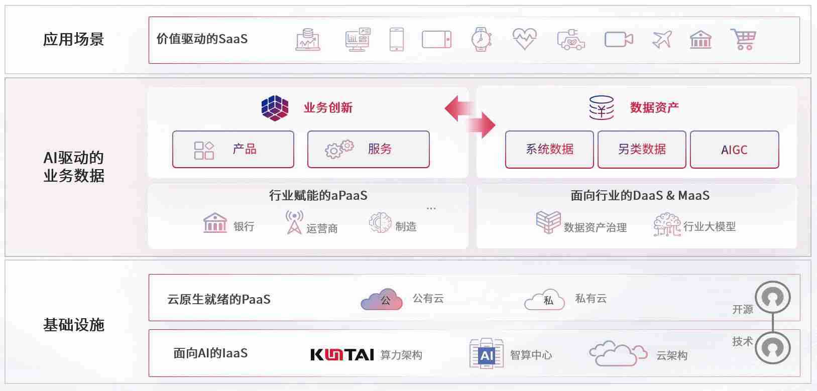 数字时代,,围绕企业数字化转型的关键要素,,,k豆钱包数码开创性的提出数云融合战略和技术体系框架,,,,着力在云原生、、数字原生、、AI原生和信创产业上架构产品和服务能力,,,,为处在不同数字化转型阶段的快消零售、、、、汽车、、金融、、、医疗、、、政企、、、、教育、、运营商等行业客户提供泛在的敏捷IT能力和融合的数据驱动能力,,构建跨界融合创新的数字业务场景和新业务模式,,,,助力企业级客户建立面向未来的核心能力和竞争优势,,,全面推动社会的数字化、、、、智能化转型升级。。。