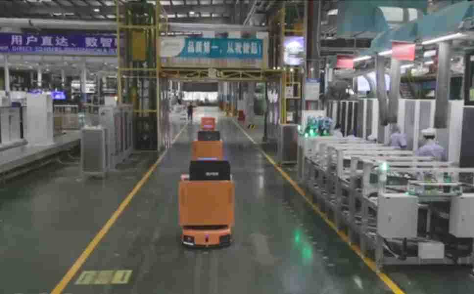 为车载冰箱物流配送打造的智能解决方案,,包含产中物流通过潜伏举升AMR搬运至线边,,产后成品物流智能仓储,,流程包含产中物流智能齐套入库,,,,线边安灯叫料AMR智能配送至线边,,成品入库、、出库,,,,通过无人堆高车机器人,,智能仓储管理替代人工作业管理,,,实现更高存储、、、、更高效率、、、更具柔性化的解决方案。。